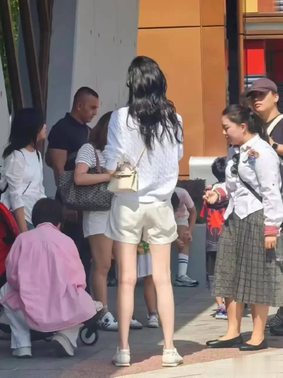 当天她身穿白色针织上衣搭配同色短裤,脚踩白色运动鞋,一头波浪长发披肩,佩戴黑框眼镜,简约造型却难掩超模气场。即便已是两个孩子的妈妈,她依然身材高挑、皮肤白皙,在人群中格外抢眼,状态宛如二十出头的少女,网友纷纷感叹:“这哪里是生了两个娃,分明是被岁月遗忘的人!”